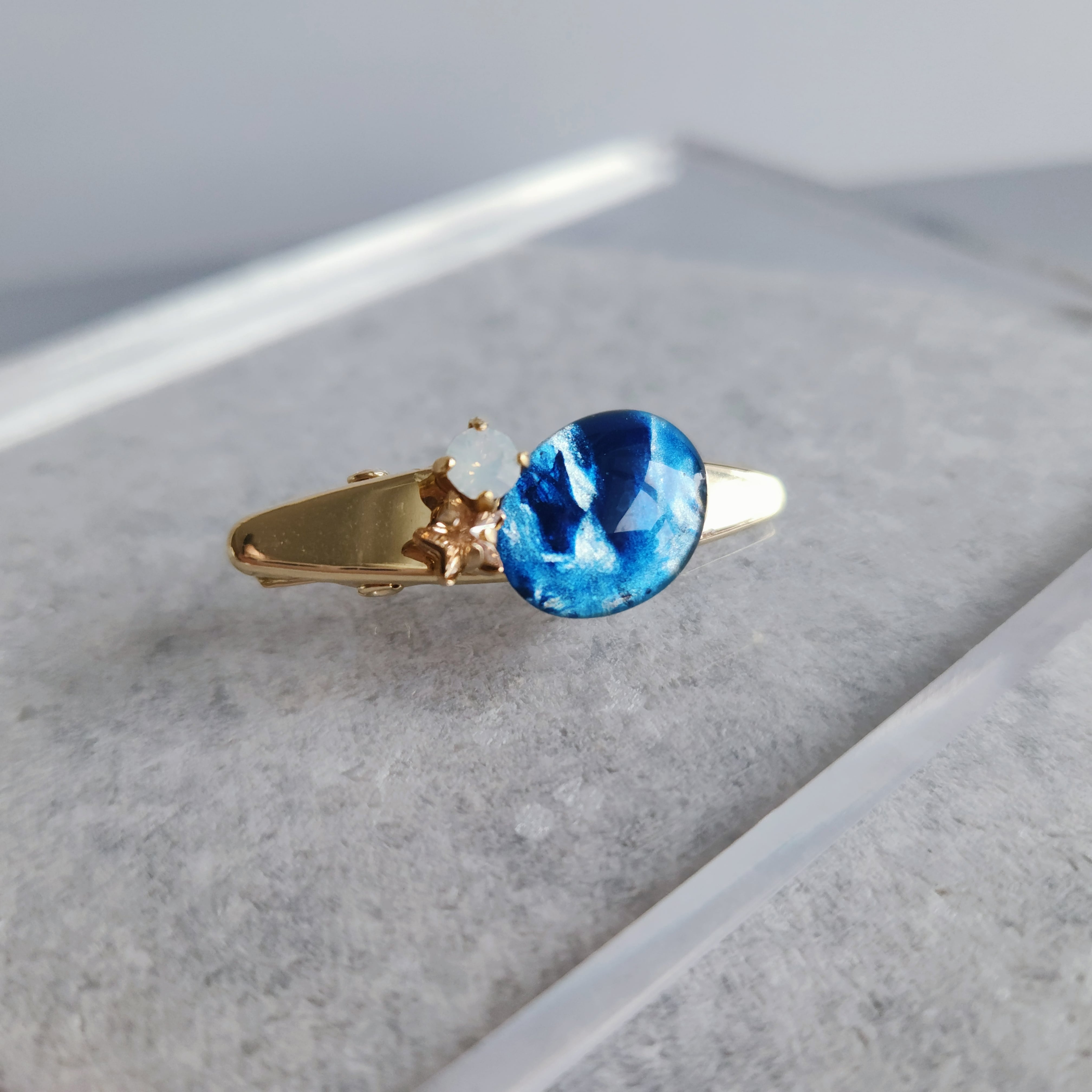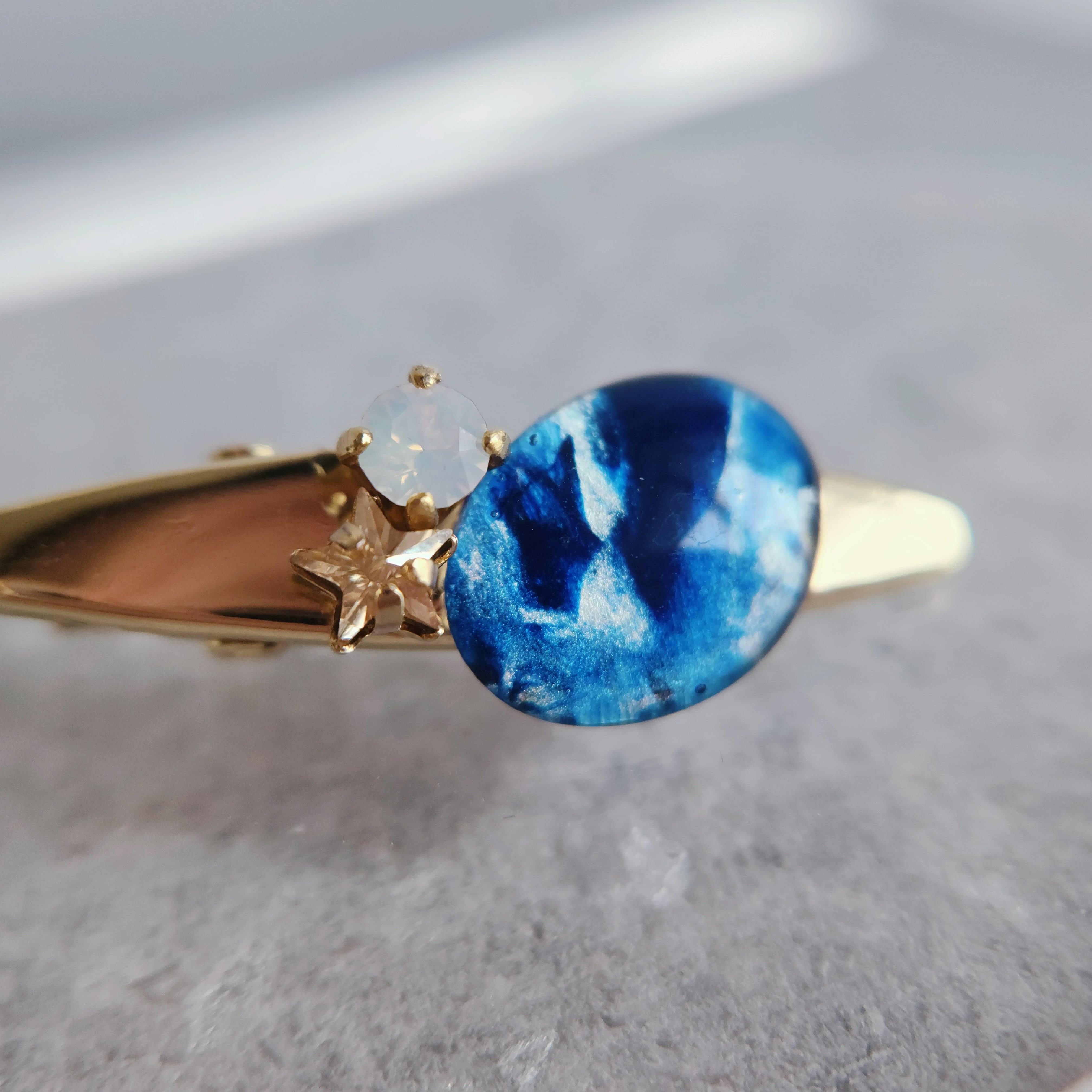ブルーパーツが目を惹く、手描きアートのミニヘアクリップです。⠀