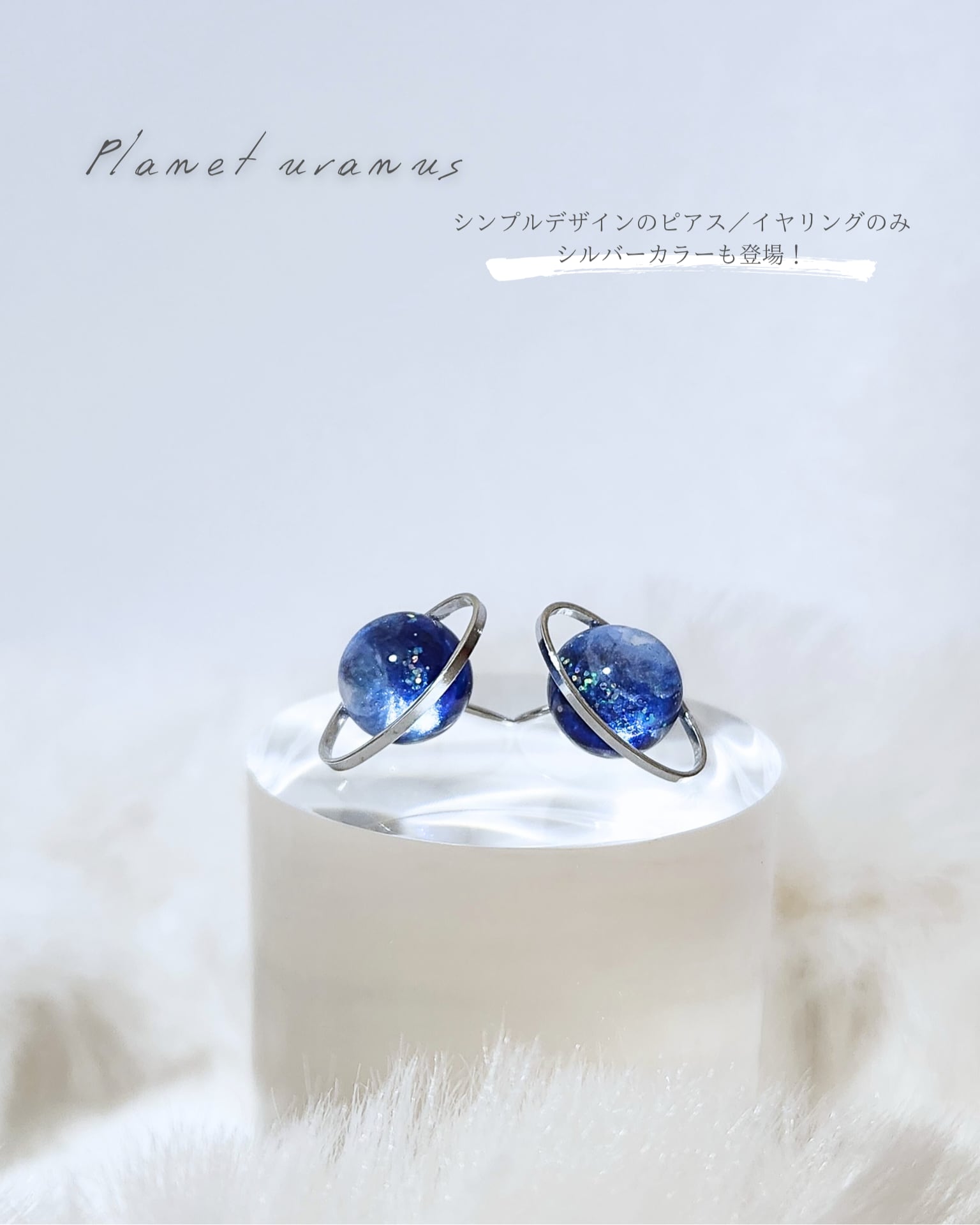 このピアス/イヤリングは、惑星ウラヌスの美しさをシンプルに表現した揺れないタイプ。